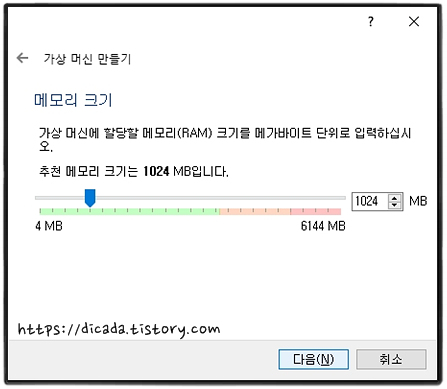 [메모리 크기]를 선택하는 창이 나타나는데요...