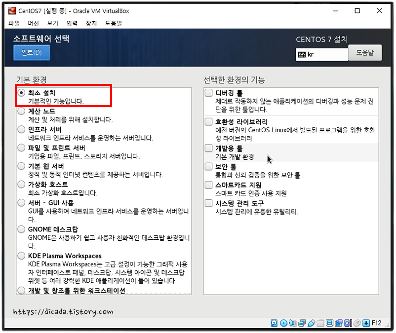 CentOS를 사용하여, Linux를 공부하는면, [최소설치]로도 충분하다네요.