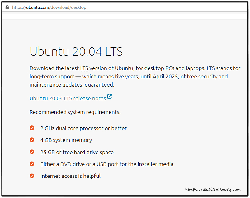 Ubuntu-20 컴퓨터 요구 사양 입니다.