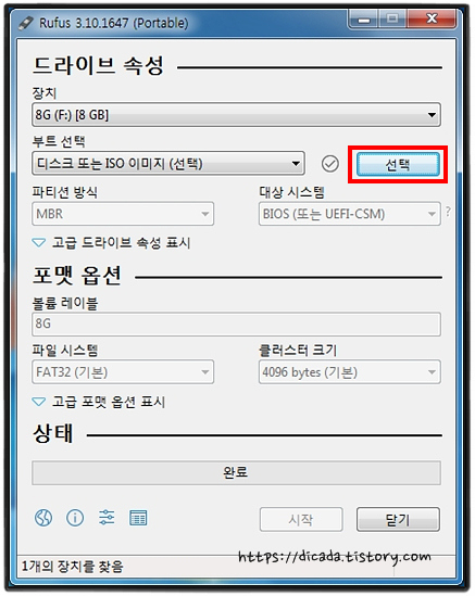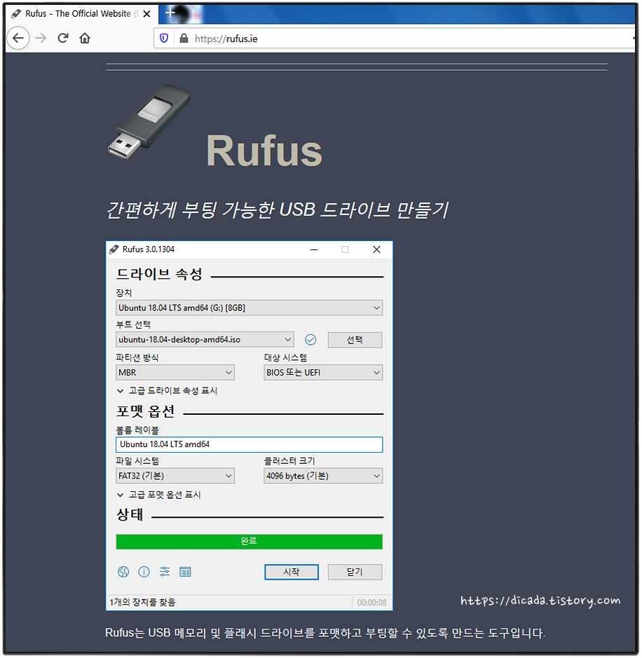Rufus 홈페이로 가면 한글 창으로 나타납니다. 고맙게도요~~