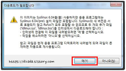 [ISO 이미지 모드로 쓰기(권장)]선택 되어있는 것 확인하고, [OK] 클릭.