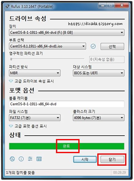 [완료] 가 나타나면, [닫기]에 클릭 하시면 됩니다.
