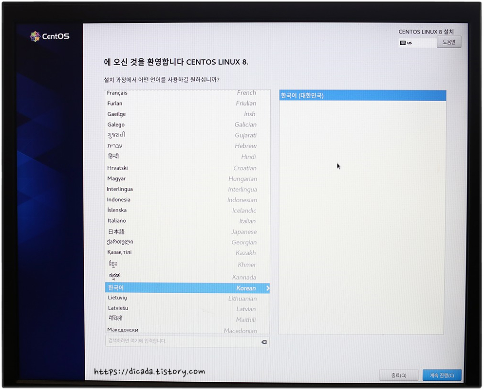 CentOS-8 설치 과정은 앞선 포스팅글에서