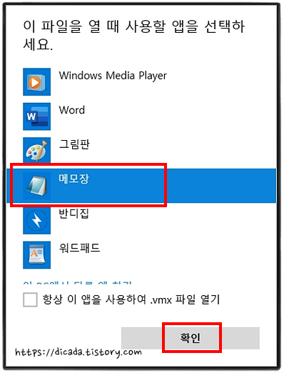 [ macOS 10.15 Catalina.vmx ] 파일에 오른쪽 마우스 버튼을 클릭하시고, [ 연결프로그램]을 선택한후