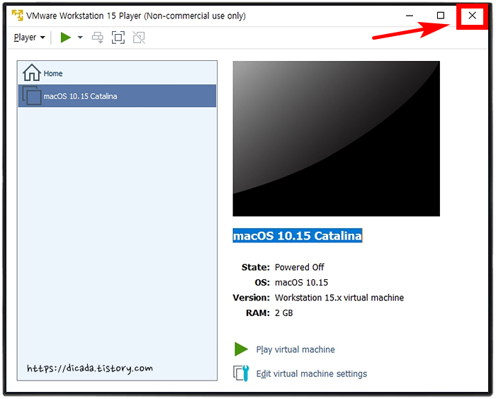 [macOS 10.15 Catalina]를 선택하시고 [Edit virtual machine settings]를 선택 하세요.