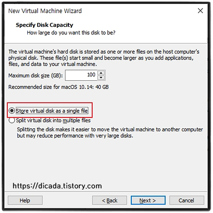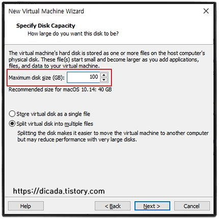 용량은 100Gb로 정하면 충분하리라 생각됩니다.