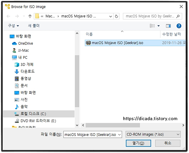 Geekrar.com에서 다운로드 받으신 Mojave파일을 선택하세요.