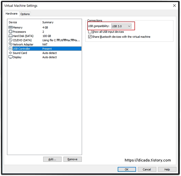 [OK]를 누르셔서, [Virtual Machine Settings]에서 나오신 후에,
