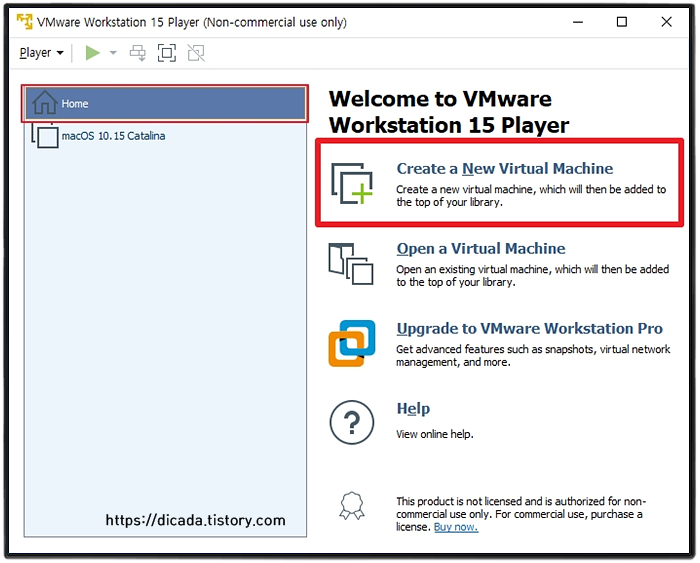 처음 VMware를 인스톨 했을때는 Home 만 있습니다.