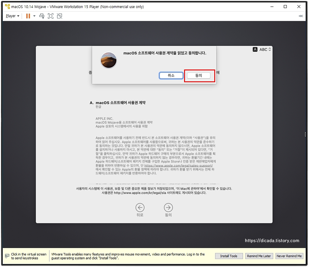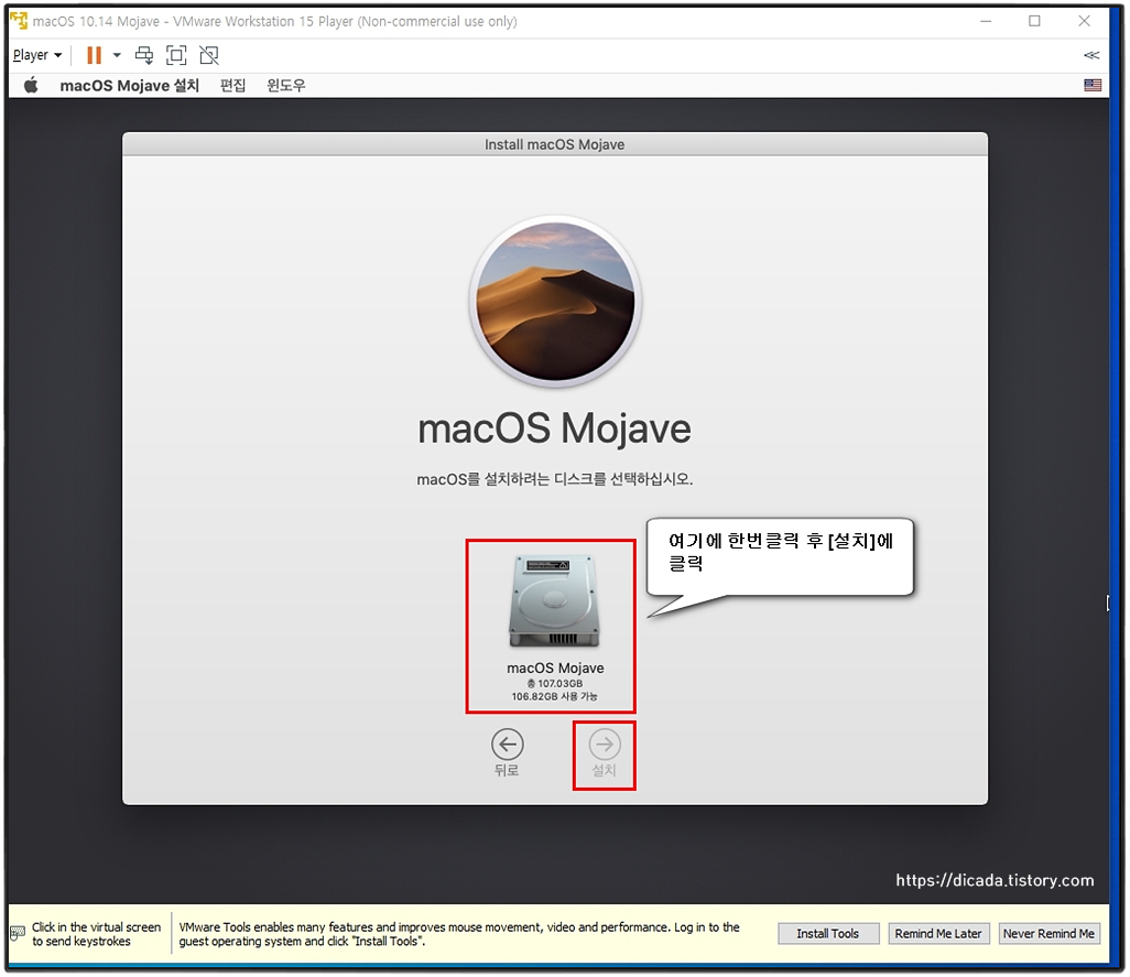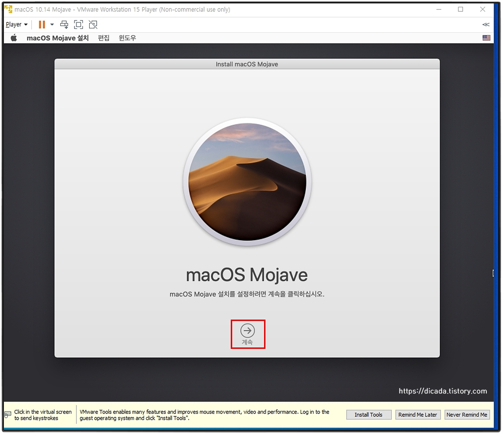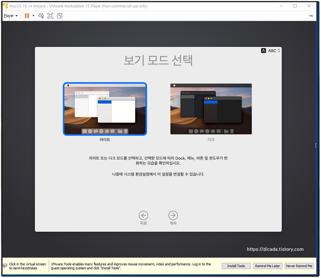 VMware를 통한 Mojave를 인스톨 하는 과정입니다.