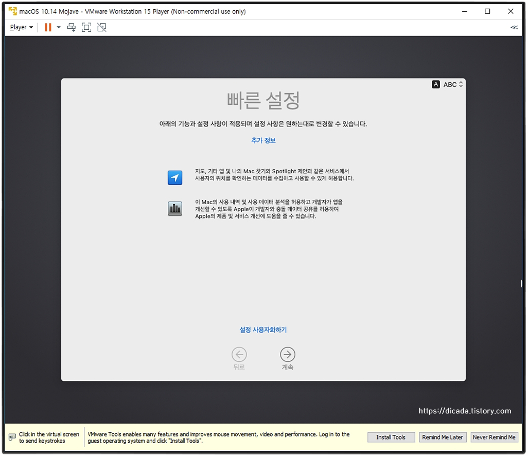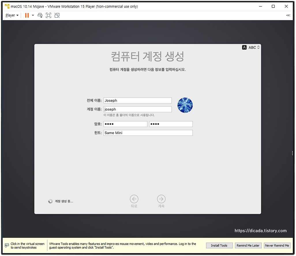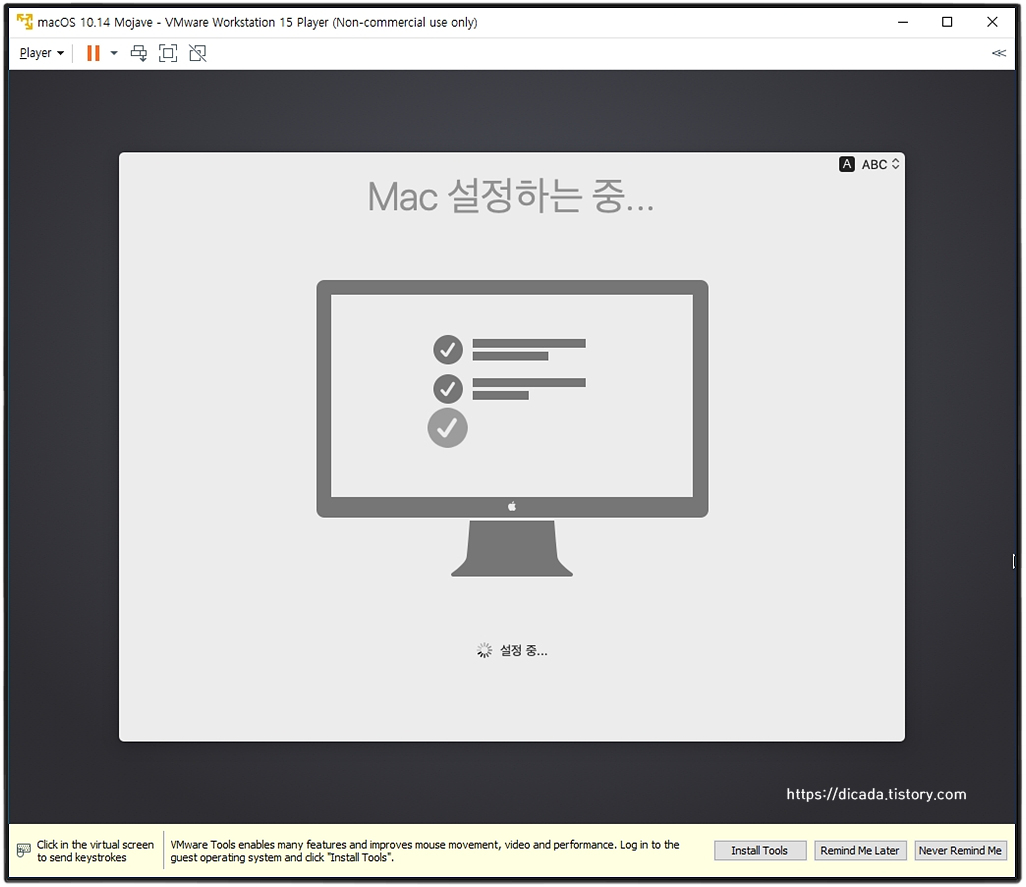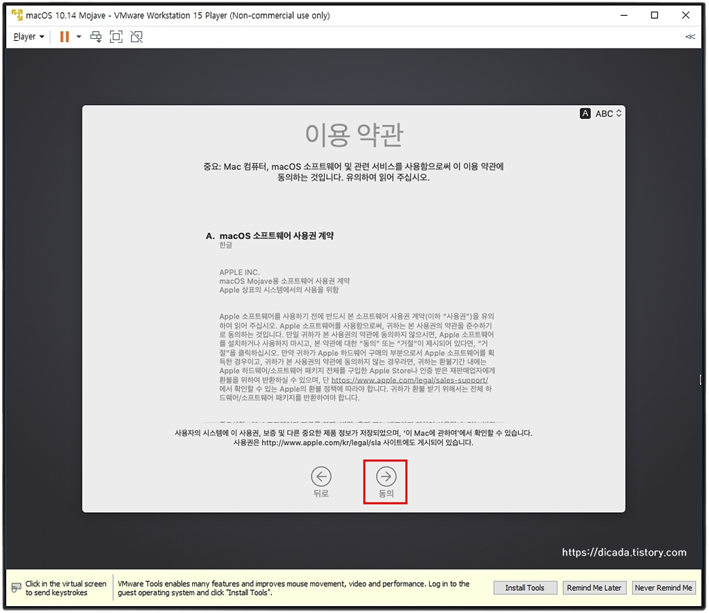 VMware를 통한 Mojave를 인스톨 하는 과정입니다.