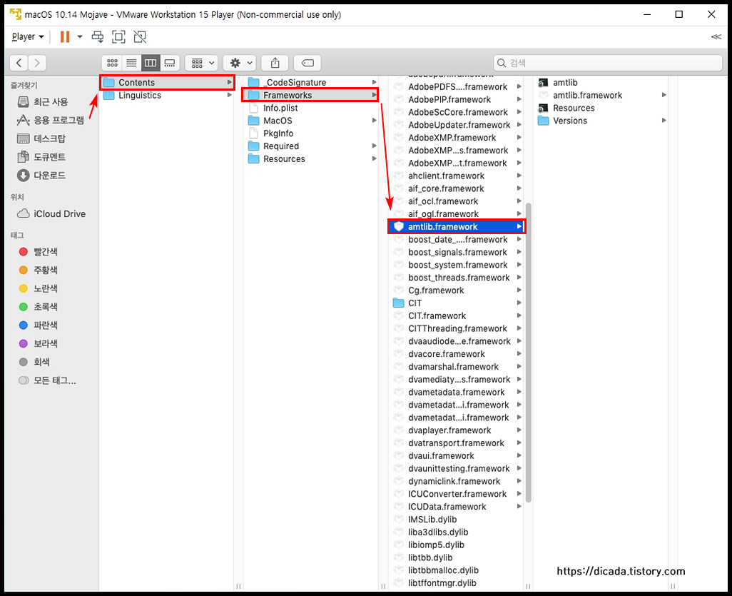 [Contents] --> [ Frameworks] --> [amtlib.framework] 에 마우스 왼쪽버튼 클릭 해서 선택하고,