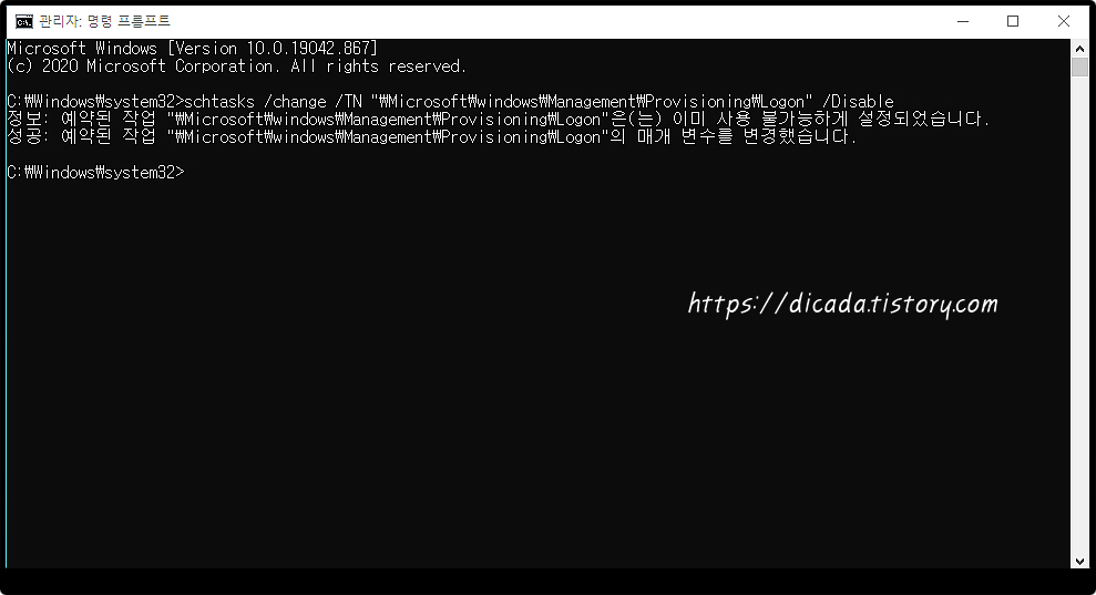 SCHTASKS /Change /TN "\Microsoft\Windows\Management\Provisioning\Logon" /DISABLE
