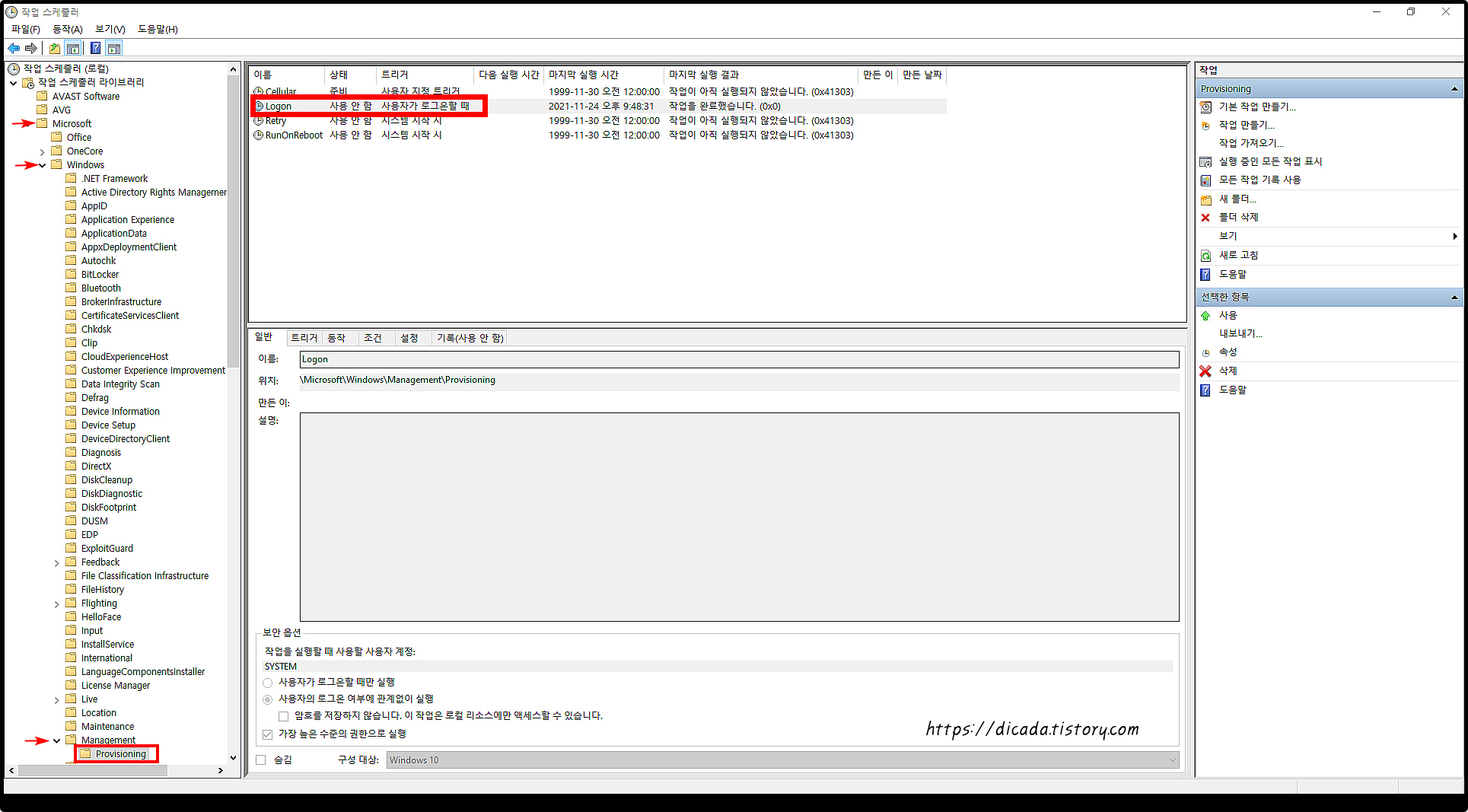 4. [Logon]에서 마우스 오른쪽버튼 클릭해서 [ 사용안 함]을 선택 합니다.