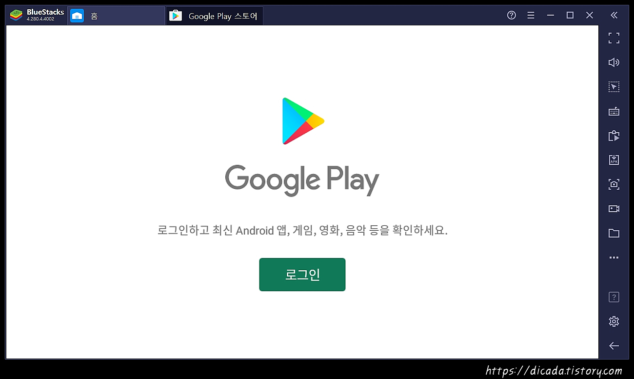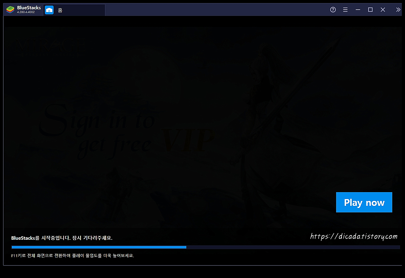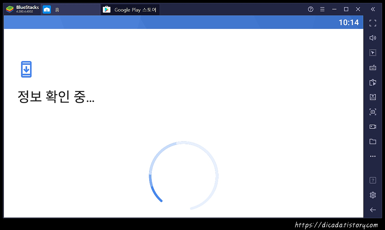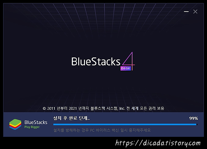처음 프로그램 설치 후에는 자동으로 BlueStacks가 구동이 되구요,