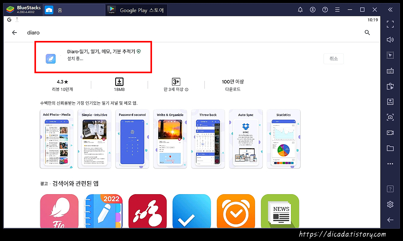 약 9년정도 무료버젼으로 제가 사용하고 있는 다이어리로 사용하는 [Diaro] 라는 앱으로 보여드립니다.