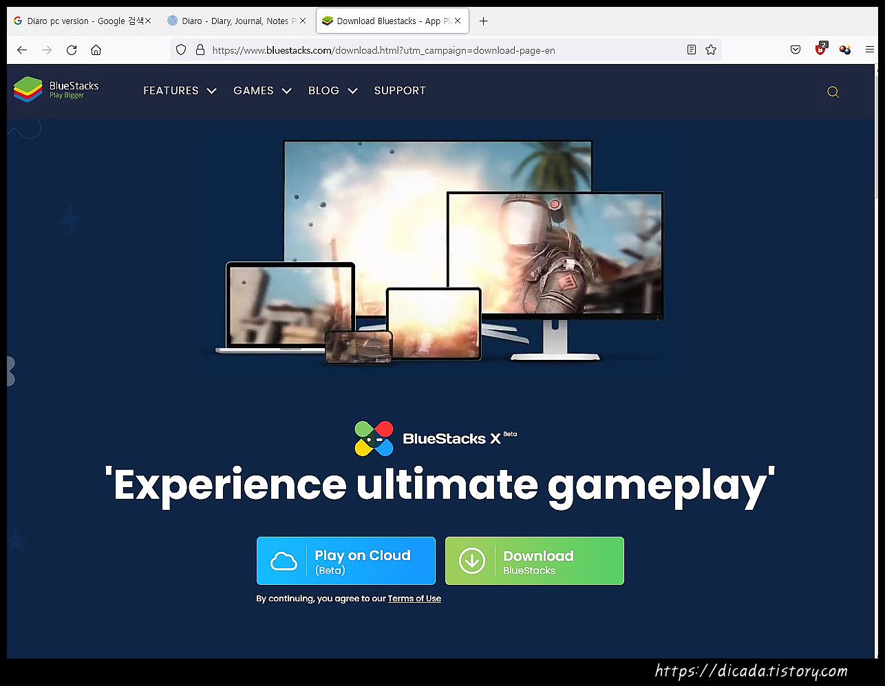 먼저 에뮤레이터 BlueStacks 를 아래의 사이트에서 다운로드 받습니다.