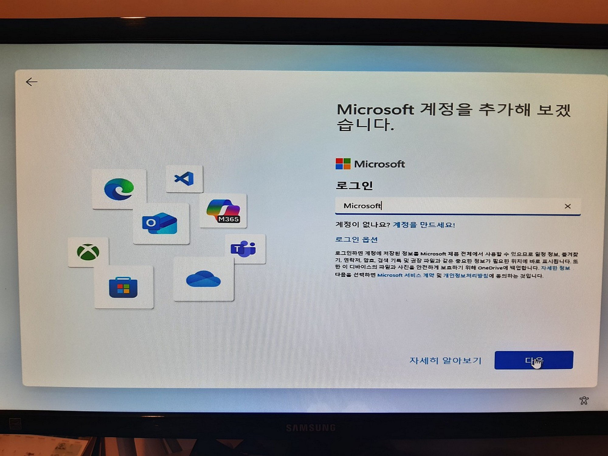 로그인 에는 : Microsoft