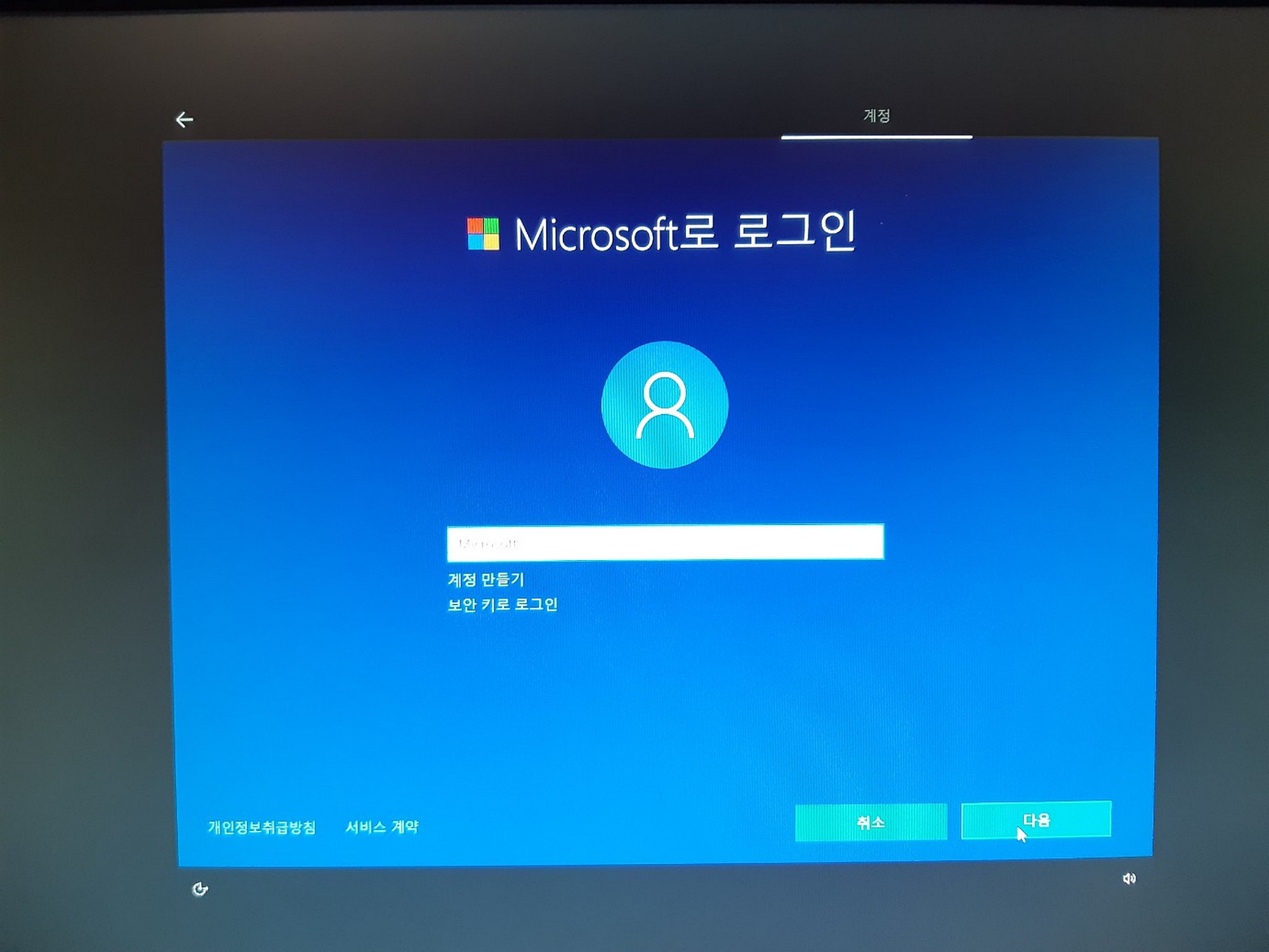 윈도우 10 혹은 11 설치시 로그인 화면이 나타나는데,
